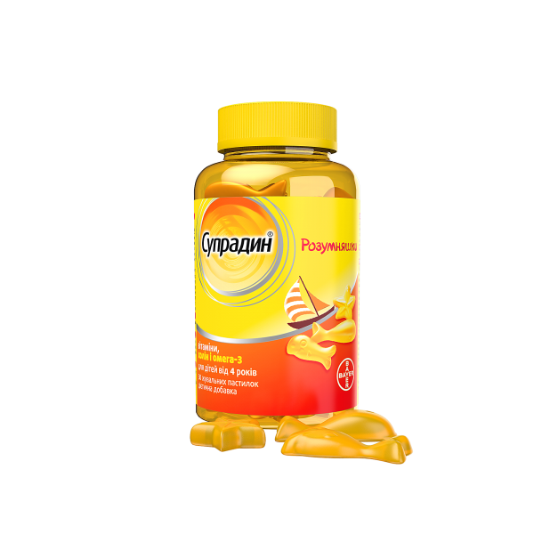 «Супрадин Кидс» показан к применению во время еды детям в возрасте от 5 до 11 лет по 1 шт . Детям старше 11 лет - по 2 шт . на протяжении дня . Срок приема «Супрадина Юниор» - 25-30 дней . Средняя цена от 445 до 494 руб . «Супрадин Кидс» (Омега 3, комплекс с холином)