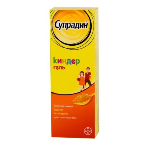 Супрадин Кидс гель Это поливитаминный комплекс для деток старше трех лет, включающий бета-каротин и лецитин . Он обладает общеукрепляющим воздействием, а также положительно влияет на развитие детей, особенно на их нервную систему . Благодаря наличию в составе лецитина такой комплекс способствует интеллектуальной деятельности .
