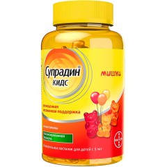 Супрадин Киндер гель (для детей) . Конфеты и таблетки жевательные Кидс и Кидс Юниор . Состав Супрадина подобран таким образом, чтобы удовлетворять дневную потребность организма в полезных микроэлементах, минералах и . . .