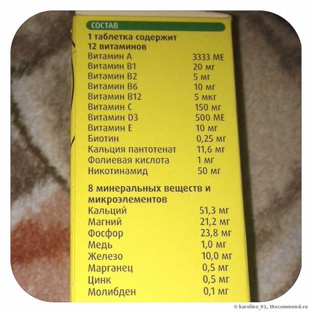 разовая (она же суточная) доза соответствует одной таблетке . Указанные дозы рекомендованы для взрослых и детей, достигших 12 лет . Длительность курса определяется индивидуально . В среднем назначают 1-2 месячный приём витаминного состава . Повторное использование комплекса возможно только после консультации с врачом . Побочные эффекты