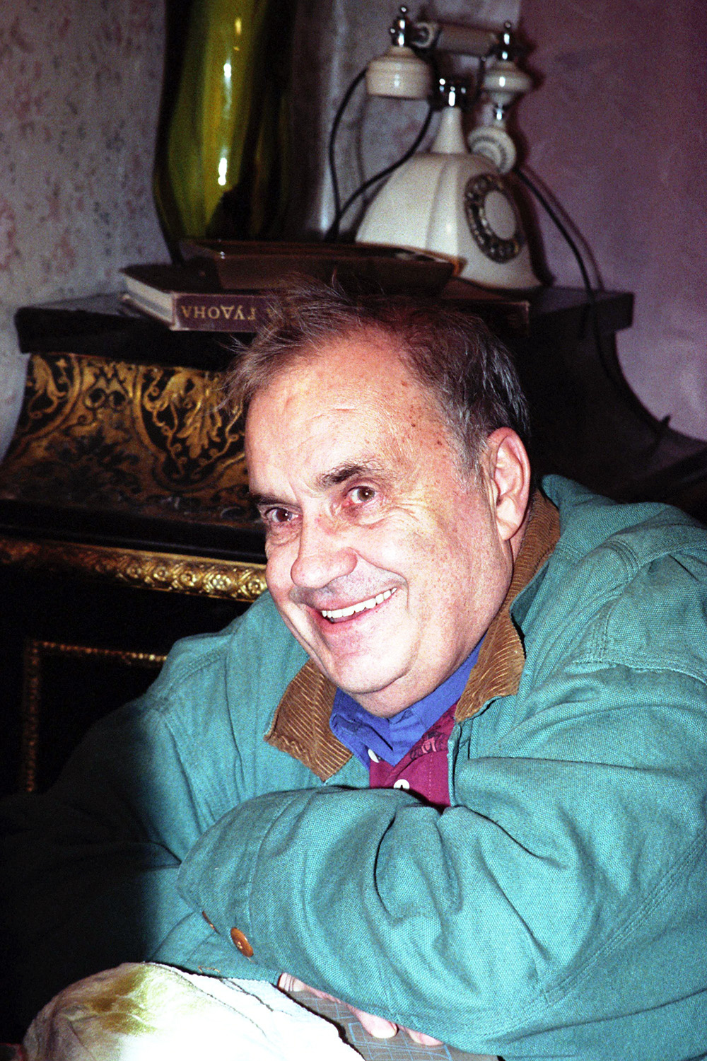 Маленький лоб его собрался в морщины, на носу играют пятна всех цветов, начиная с розового и кончая темно-синим . Перед ним на рыжем переплете Цветной тетради лежат две бумажки .