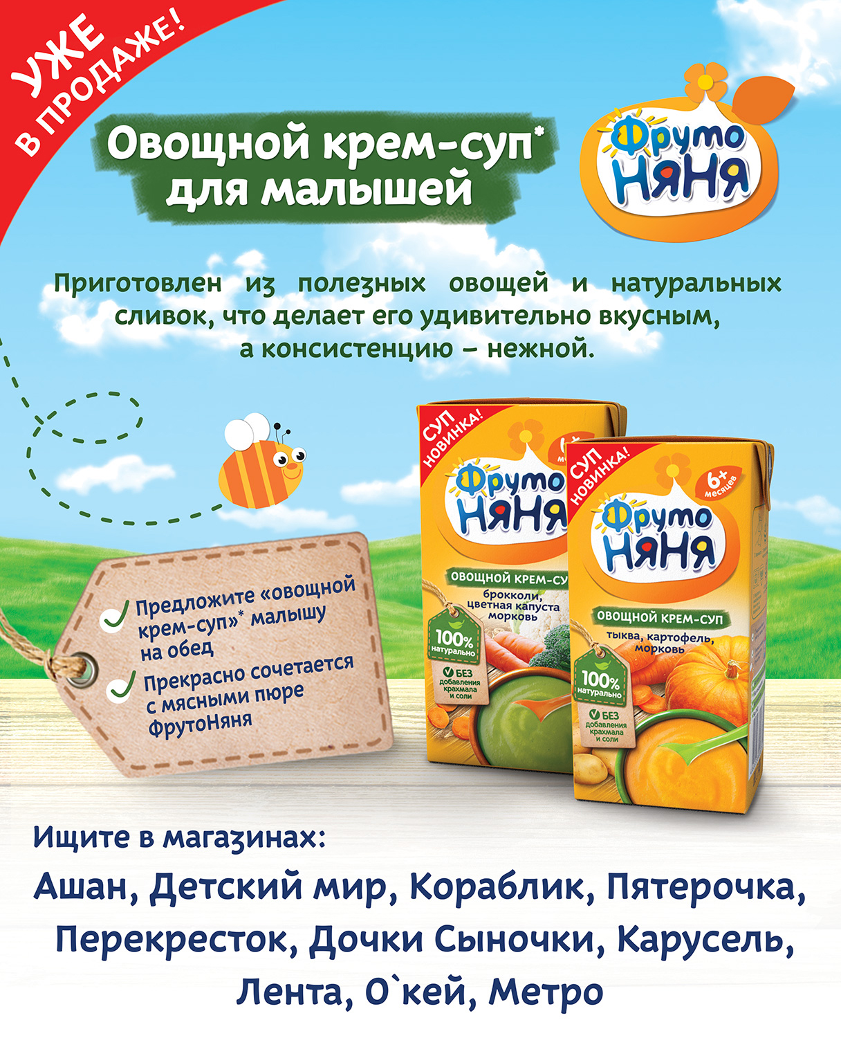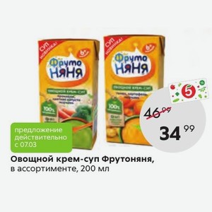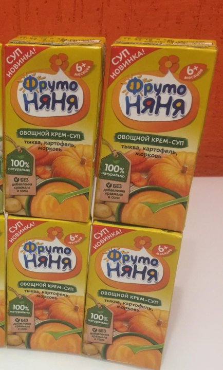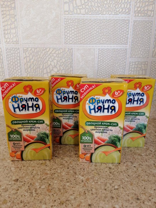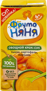 Готовые овощные «крем-супы»* «ФрутоНяня» выпускаются в надежной и безопасной упаковке с удобным отрывным носиком . В упаковке 200 мл «крем-супа»* . . . . а остатки можно доесть самим .Фото . . .