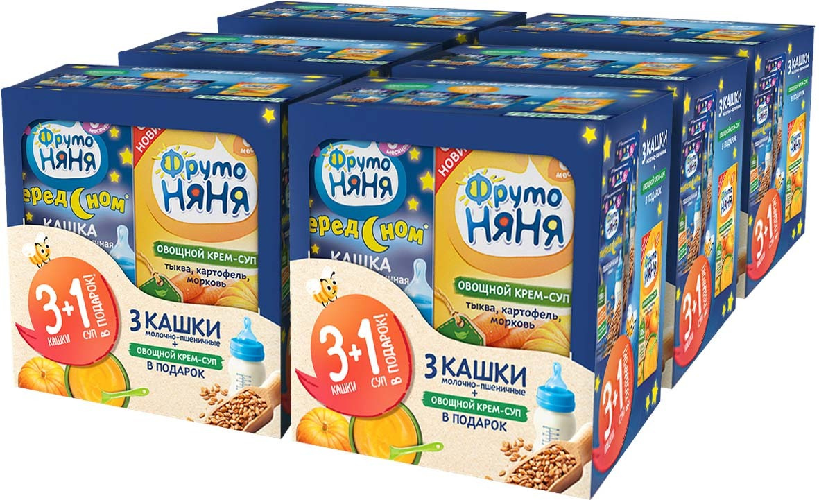 ФрутоНяня / Каша детская на коровьем молоке / овсяная / без добавок / 5 мес+ / 1 шт . ФрутоНяня / Пюре детское фруктовое / яблоко / 4 мес+ / 12 шт . ФрутоНяня / Пюре детское фруктовое / банан / яблоко / 6 . . .