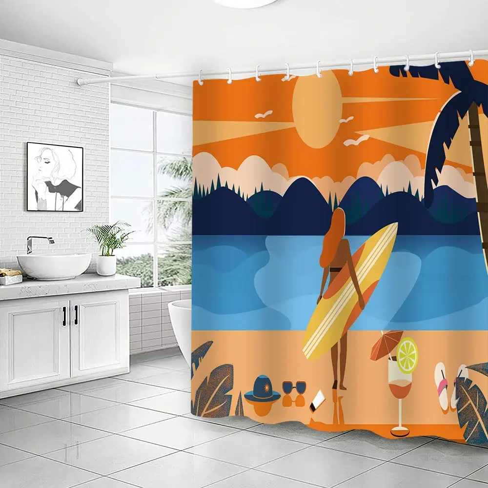 oRlNNqLfxДолго искали Surfing Shower Curtain Sunset Dusk Beach Girl Holding Surfboard Pattern Bath Curtains Waterproof Cloth with Hooks Bathroom Decor, но не могли найти? Предоставляем вашему вниманию Surfing Shower Curtain Sunset Dusk Beach Girl Holding Surfboard Pattern Bath Curtains Waterproof Cloth with Hooks Bathroom Decor по лучшей цене на рынке!