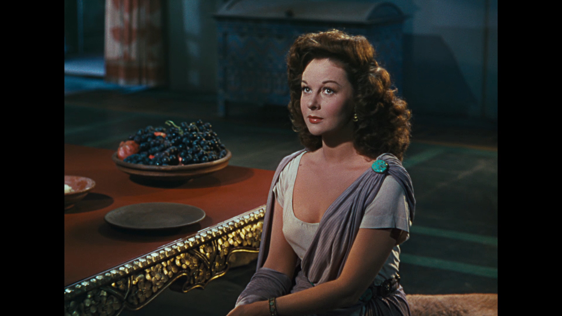 Американская актриса Сьюзен Хейворд позирует для рекламного постера фильма «Деметрий и гладиаторы» режиссера Делмера Дэйвса (Delmer Daves).
