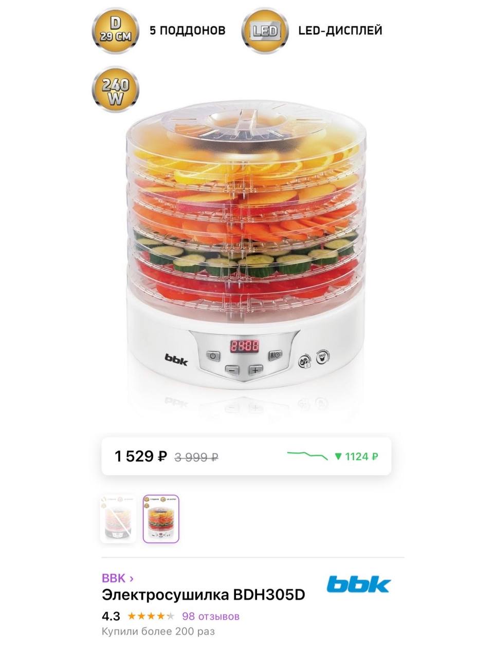 Сушилка для овощей и фруктов bbk