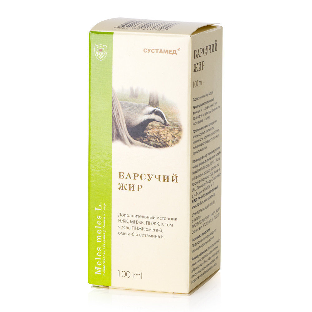Барсучий жир «Сустамед» (капсулы, жидкая форма): инструкция по применению Состав и форма выпуска, Фармакологические характеристики, Показания, Способ применения (В педиатрии, В сезон простуд), Противопоказания, Побочные проявления, Хранение, Отпуск из аптек