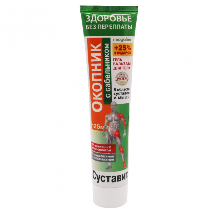 Купить Суставит Бишофит с окопником и сабельником гель-бальзам, 125 мл в интернет-аптеке в Санкт-Петербурге, низкие цены и официальная инструкция по применению, честные отзывы покупателей и фармацевтов о Суставит Бишофит с окопником и сабельником гель-бальзам, 125 мл .