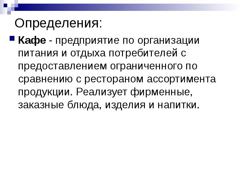 Суть деятельности кафе