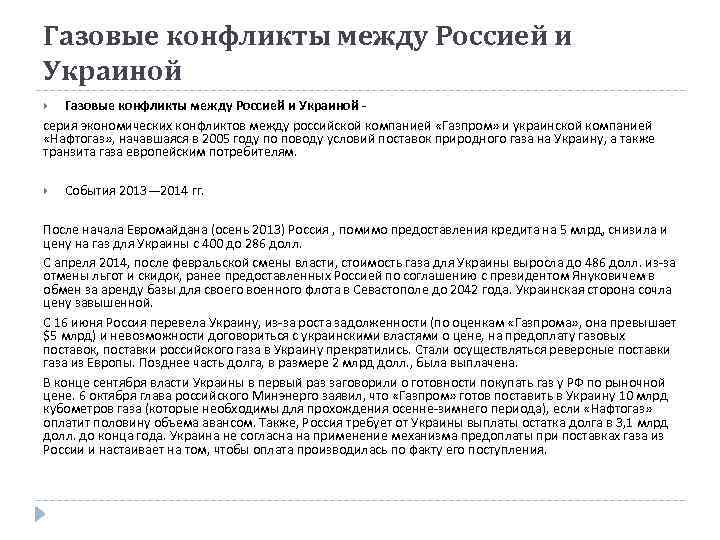 Суть конфликта газа