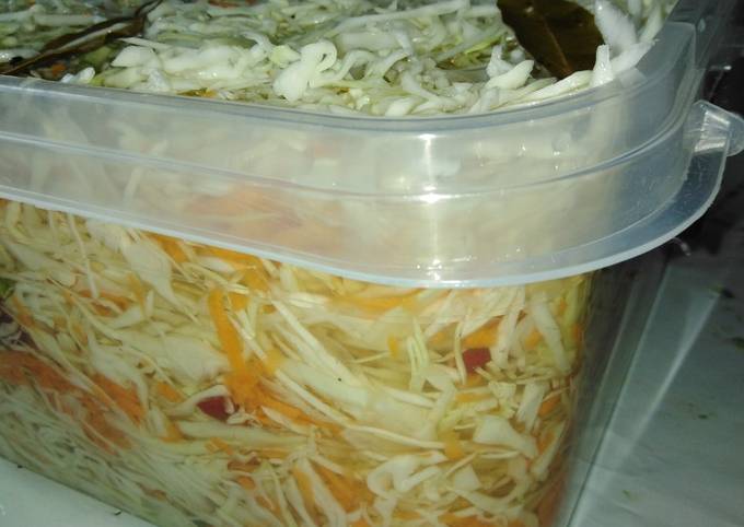 В моей семье эта закусочка очень популярна, особенно зимой: когда выбор овощей не велик, а хочется побаловать себя вкусным салатиком или овощным блюдом . Маринованная капуста отлично хранится в холоде .