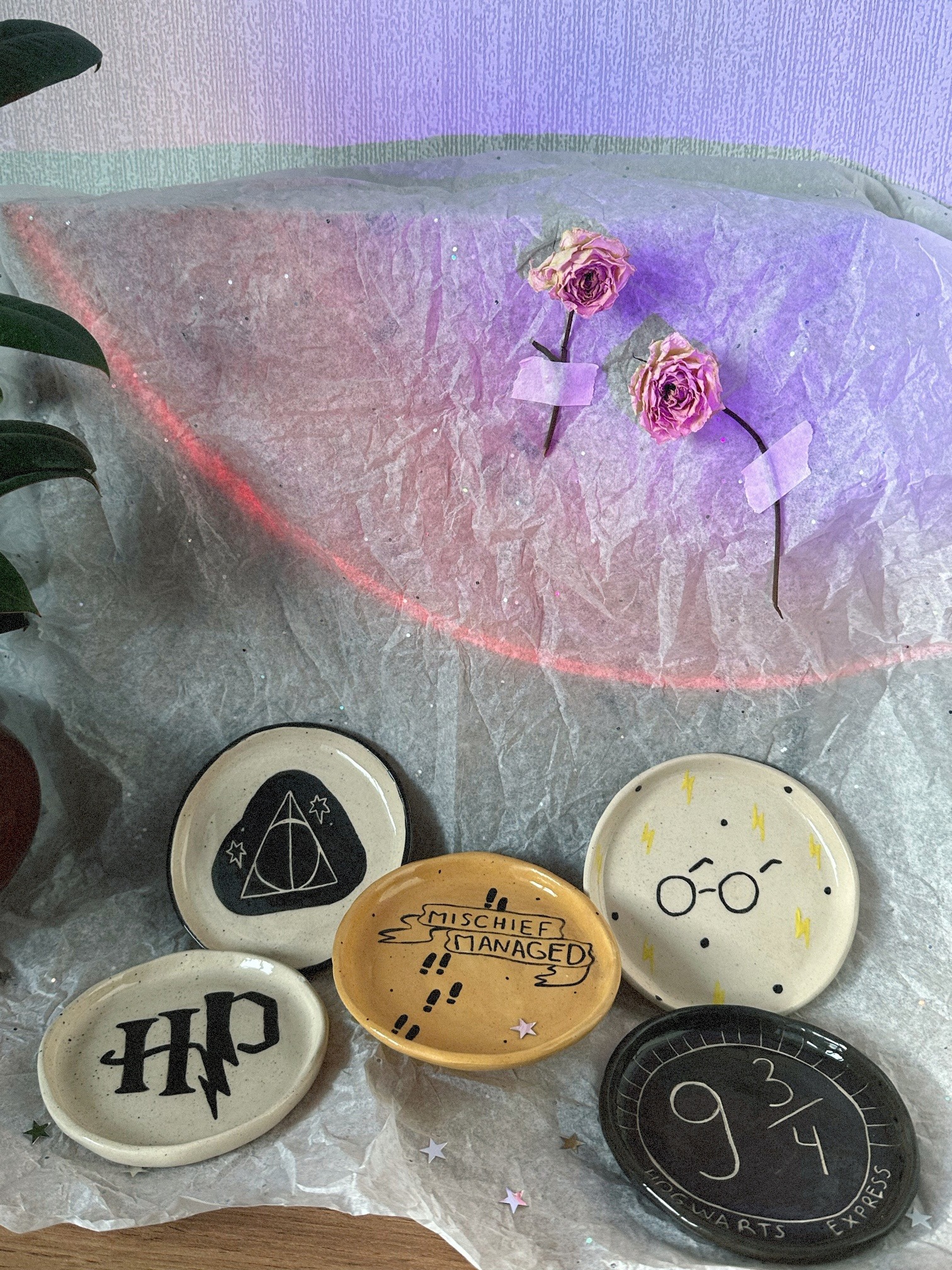 Керамические тарелочки - диаметр 12см, в единственном экземпляре без повтора, ручная работа. (в наличии дары смерти, HP, платформа 9 и 3 четверти)