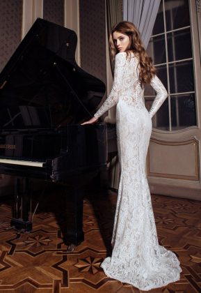 Девушки с безупречной фигурой могут позволить себе облегающее платье с расширяющимися клиньями подола. Свадебные платья-русалки стилисты украшают монохромной вышивкой, сдержанной отделкой камнями Сваровски, полупрозрачными вставками из кружева или вышитого фатина по бокам.