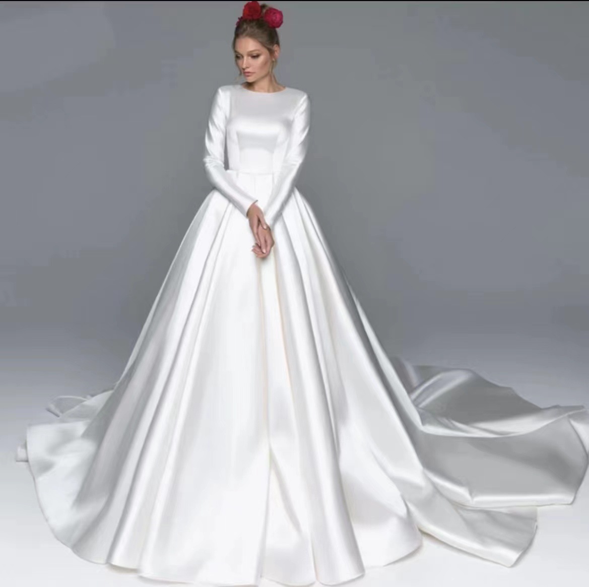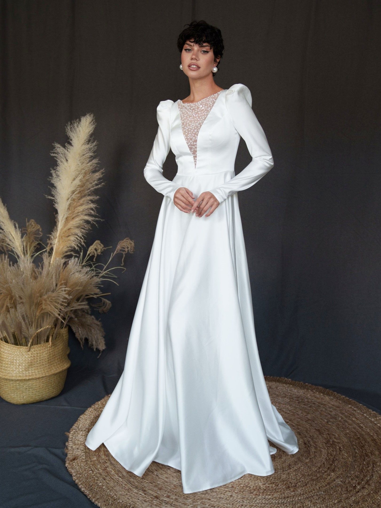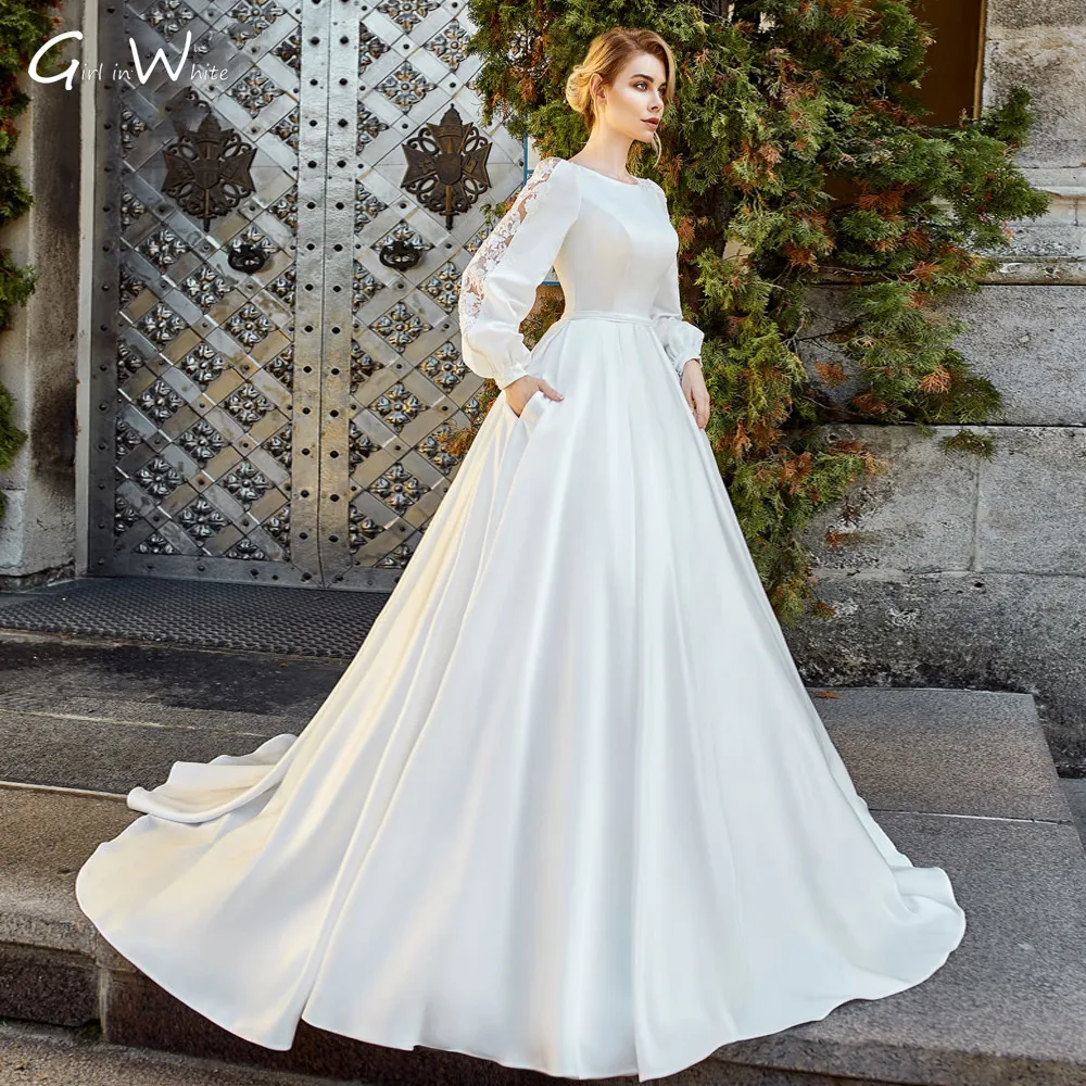 Свадебные Платья Атласные С Рукавами Фото 174 фотографий