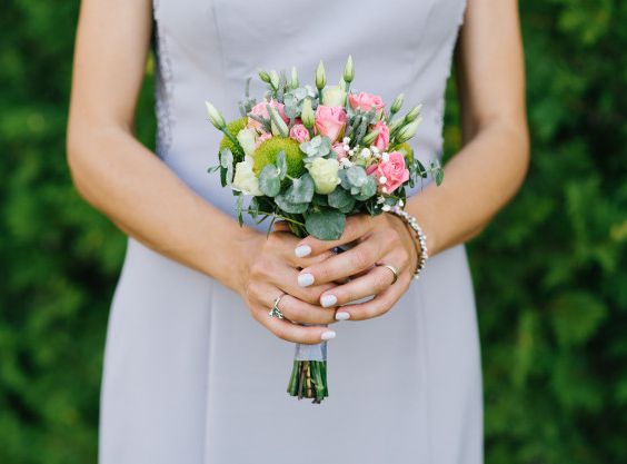 Свадебный букет невесты из кустовой хризантемы . Кустовые цветы отличаются раскрытыми бутонами . Из них, как правило, создают букеты в естественном стиле .