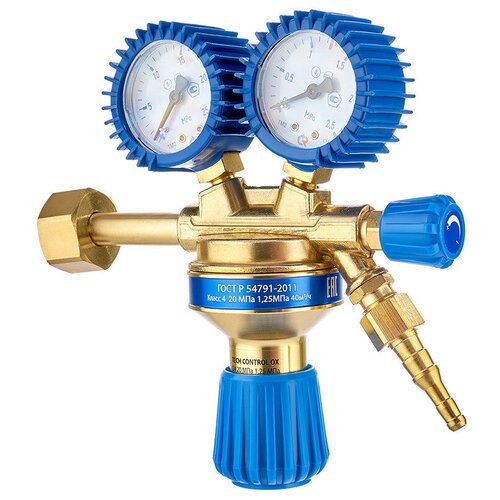 Doğrulanmış basınç göstergelerine sahip TECH CONTROL OX oksijen düşürücü, gaz silindirinden gelen gazın basıncını düşürmek ve gaz-alev işleme ve ilgili işlemler sırasında otomatik olarak sabit bir çalışma basıncını korumak için tasarlanmıştır. Güçlendirilmiş diyafram Ø53 mm sayesinde dişli kutusu zorlu koşullarda yoğun kullanıma uygundur. GOST R 54791-2011'e uygun olarak üretilmiştir. Özellikler ve avantajlar: Şanzıman mahfazası 70 MPa'ya kadar basınçla test edilmiştir. Şanzıman redüksiyon ünitesini güvenilir bir şekilde korumak için pirinçten yapılmış bir giriş filtresi takılmıştır. Doğrulamaya ilişkin bilgiler Rosstandart “Arshin” Federal Devlet Bilgi Sisteminde yayınlanmaktadır. Güvenlik kurallarına uygun olarak manometreler izin verilen maksimum basınç değerlerini gösteren kırmızı işaretlerle işaretlenmiştir. Kalibrasyon aralığı 20 MPa'ya kadar olan silindirlerle kullanıma uygundur. çalışma gaz basıncı: 1,25 mPa Girişteki en yüksek gaz basıncı: 20 mPa Maksimum akış kapasitesi: 50 m³/h Emniyet valfinin maksimum tepki basıncı: 1,8 mPa Boyutlar: 180×180×60 mm Standart ölçü: Büyük Gövde malzemesi: Pirinç Ağırlık: 1,06 kg Bağlantı boyutları: Giriş: Rakor somunu G3/4 Çıkış: M16x1,5 Nipel: 6,3/9,0 mm