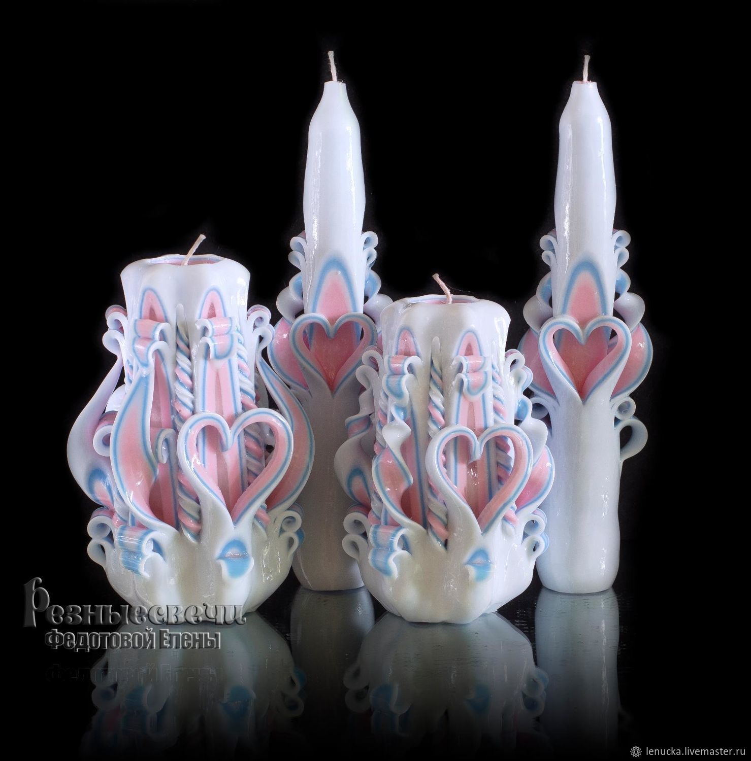 Резные свечи ручной работы,резные свечи,резные свечи Москва,резные свечи купить,резные свечи свадебные Пример цветового сочетания Нежность( розовый и голубой) . . . . На фото свеча Сердце 12-13см . . .