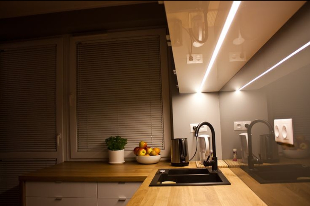 Свет ленты на кухне 114 фотографий