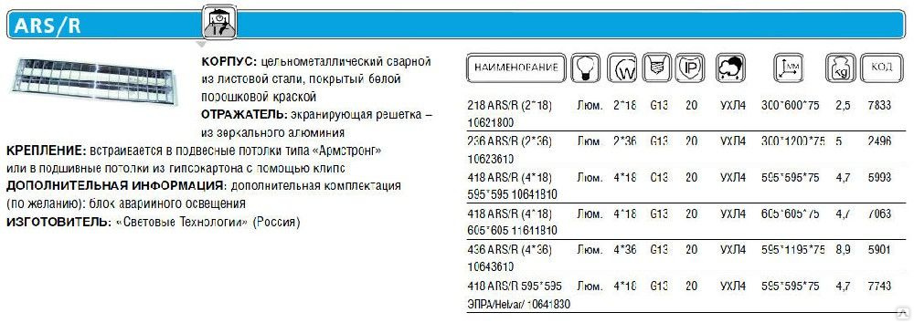 Светильник ars 418