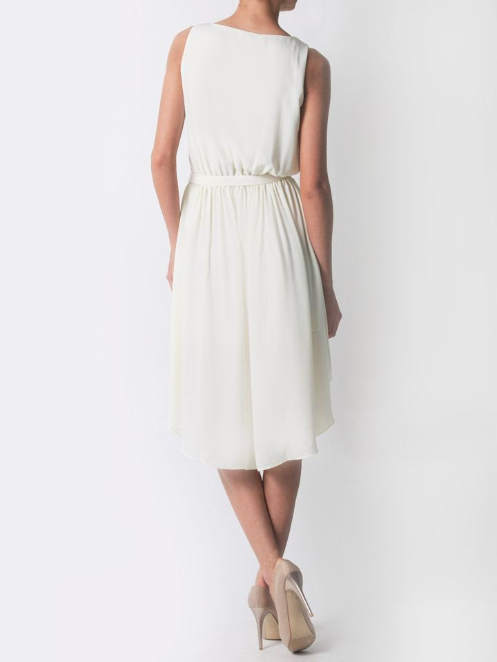 Купить светло-желтое двухслойное платье-трапецию