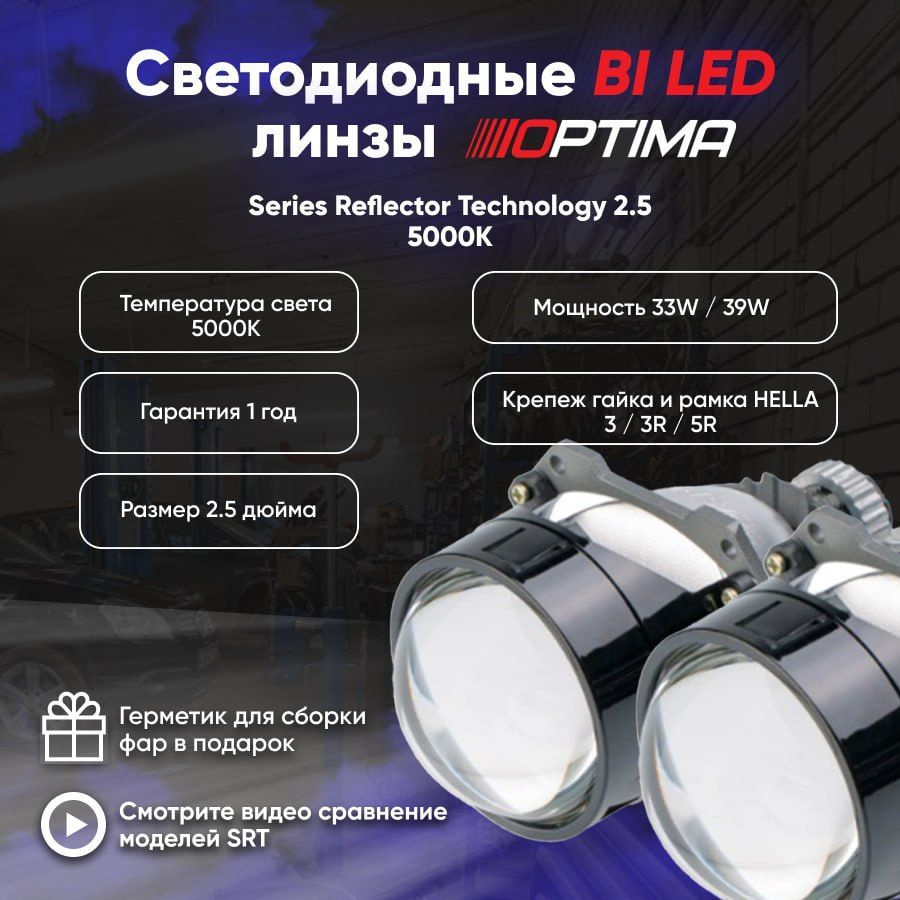 Линзы bi led Optima. Optima Premium bi-led Lens, Series Reflector Technology, 2.5", 5000к. Optima srt 2.5 bi-led. Би лед линзы Оптима