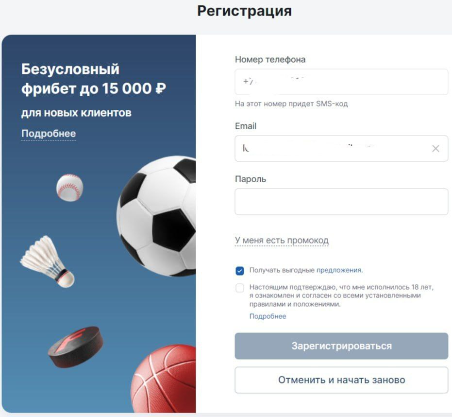 1.Проходим регистрацию на Цупис на тот номер, на который будет зарегистрирован аккаунт в БК