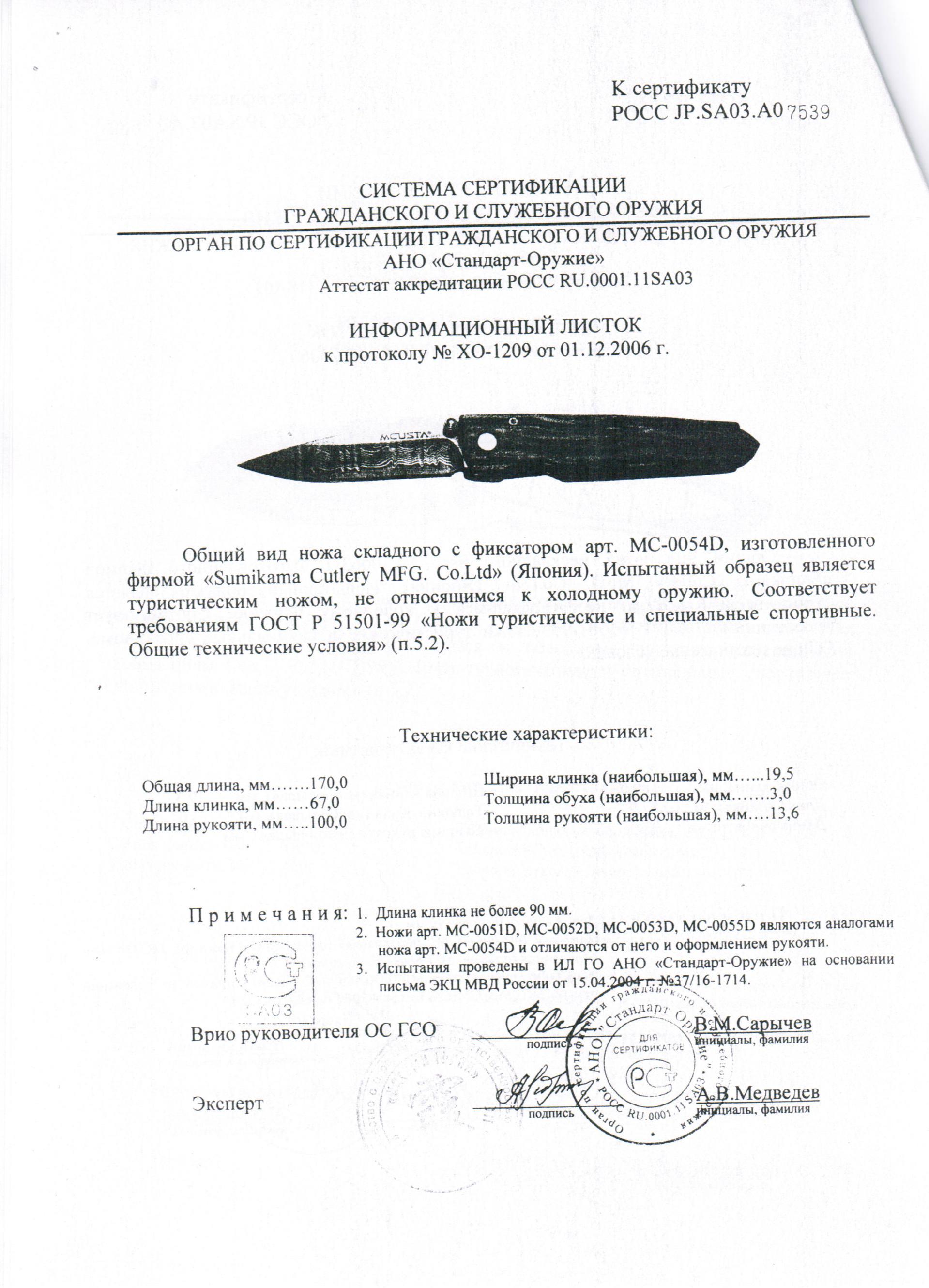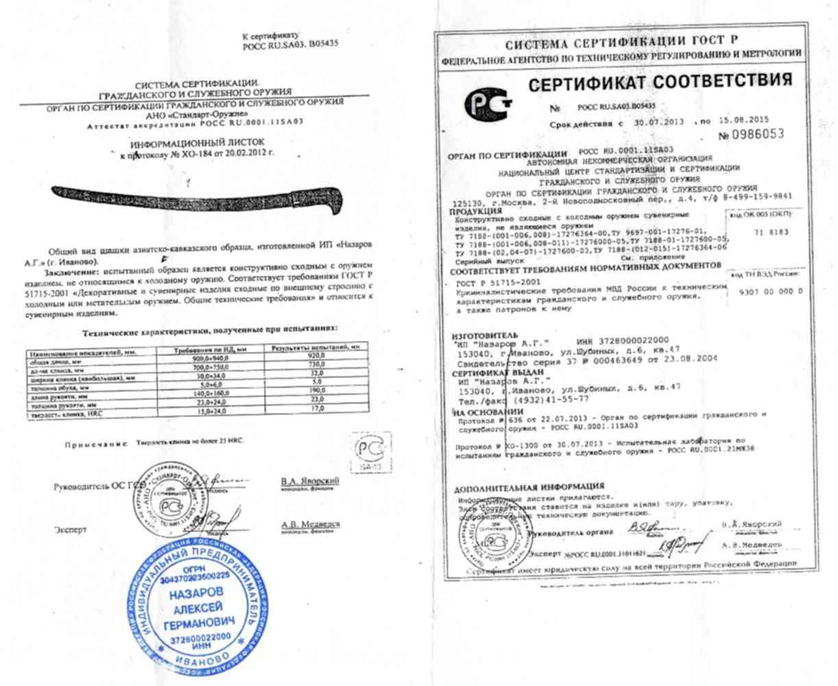 Свидетельство прилагается