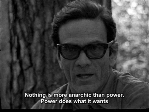 Искажённые яростью лица – вот что, в конце концов, на глубинном уровне объединяет сталинистов, феминисток, либертарианцев и всех-всех-всех, с кем даже не захочется выпить чаю, так как обязательно наткнёшься на какую-нибудь формулу, норму, аксиому. И каждый такой encounter заставляет лишь больше ценить тех, чья жизнь представляет собой только теорему. Например, любимого Пьера Паоло Пазолини. Педераст, член коммунистической партии, выступивший на стороне полиции против студентов в 60-х, взявший интервью у молчащего Эзры Паунда, недаром именно он единственный смог убедить сняться в кино столь же замечательную Марию Каллас. Любой фильм Пазолини важнее для политической философии, чем Нозик, Роулз, Хайек и Коэн вместе взятые. А уж для меня лично – и подавно. Скажу больше – педераст Пазолини важнее и нужнее для консерваторов, чем Жозеф де Местр (и его тёзки).