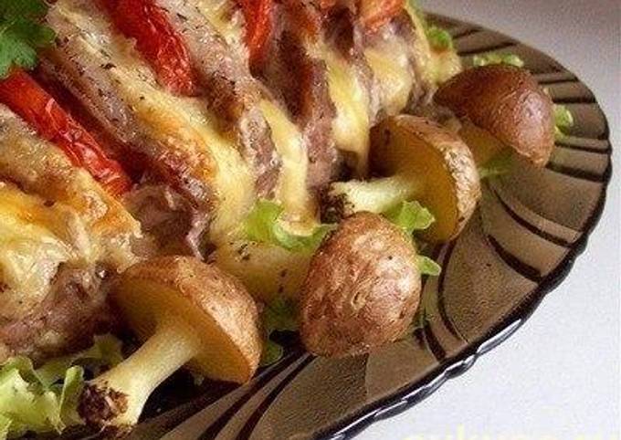 Мясо запеченное гармошкой с грибами, сыром и помидорами - красивое и очень вкусное блюдо, которое можно смело подавать на праздничный стол . Свинина получается сочная и нежная, все продукты отлично сочетаются друг с . . .