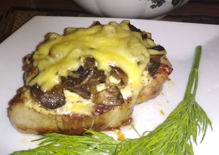Свинина, запеченная под грибами и сыром рецепт с фото