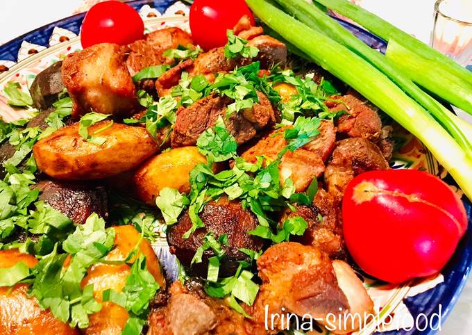 Домашнее жаркое со свининой в казане, рецепт с фото — Вкусо .ру
