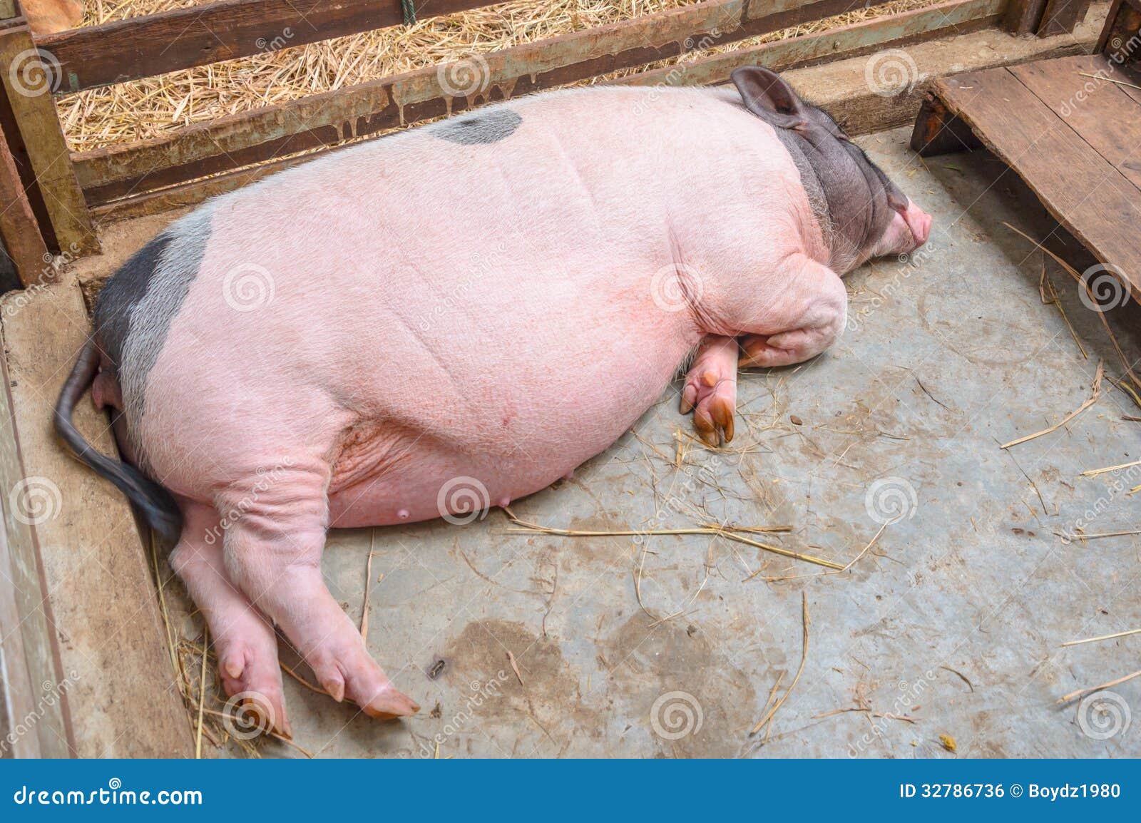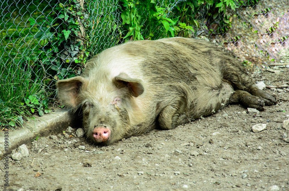 Свинка лежит на боку
