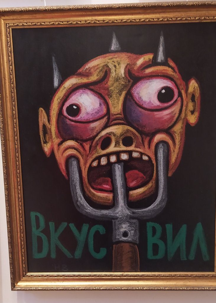 Картинная галерея «Свиное рыло» в Питере — это всегда прекрасное. Там экспликация самых лучших художников современности, включая Васю Ложкина и прочие объединение Колхуи (колдовские художники). Вот пофоткал на говномобильник немножко красоты: