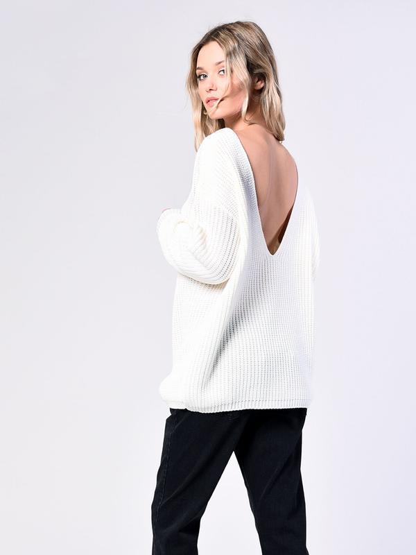 Свитер с открытой спиной . Оригинальный вариант свитера с акцентом на открытой спине . Вырез привлекает внимание и делает образ более сексуальным .