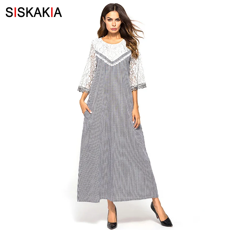 Кружевное свободное платье с длинными рукавами