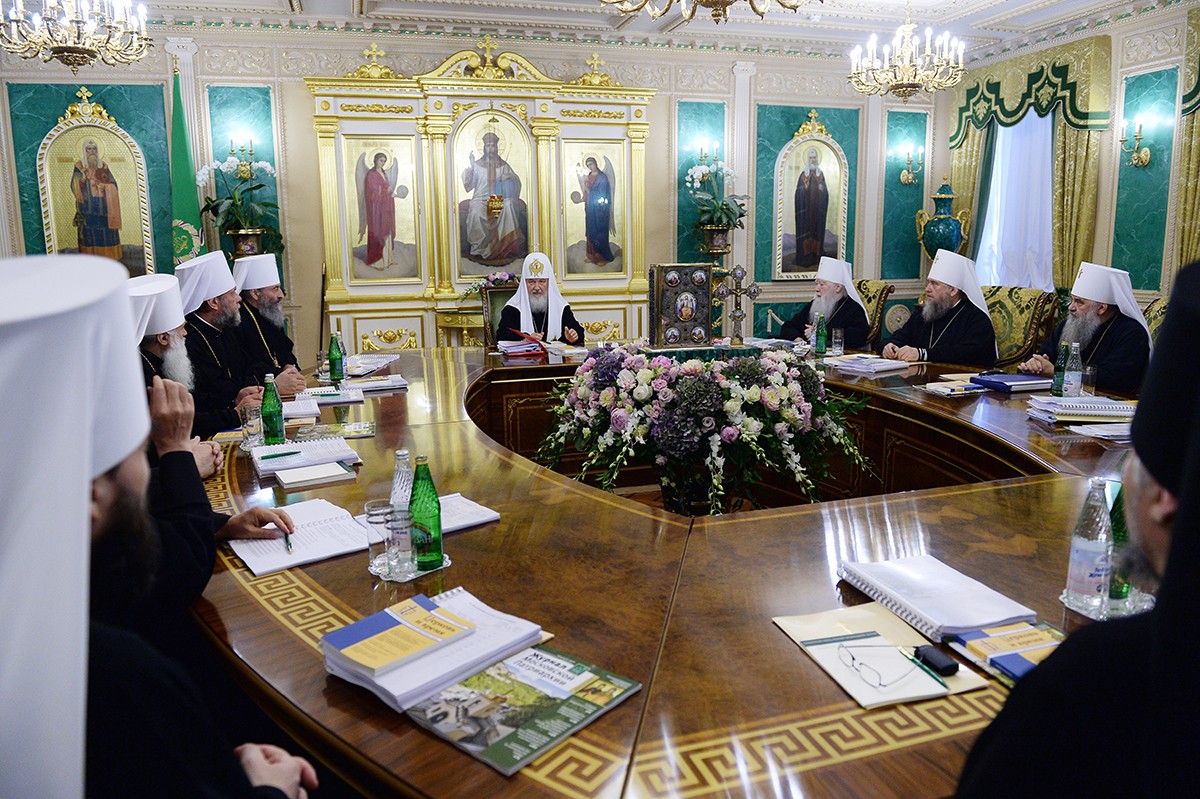 Согласно тому определению, «Священный Синод состоит из Председателя-Патриарха и двенадцати членов: Киевского митрополита как постоянного члена Синода, шести иерархов, избираемых Поместным Всероссийским Собором на три года, и пяти иерархов, вызываемых по очереди . . .