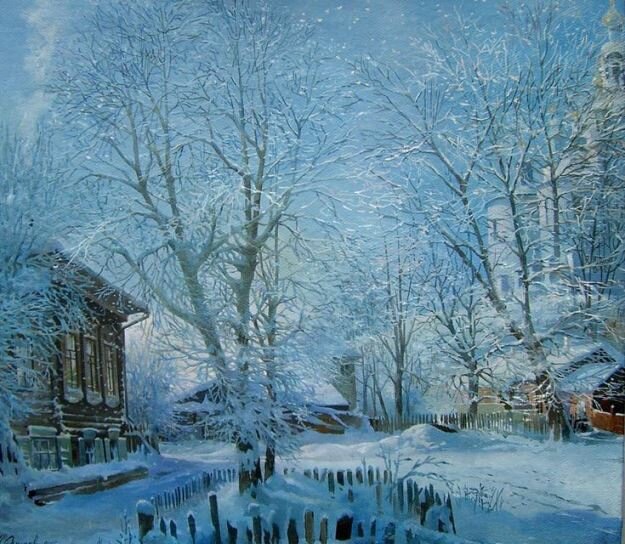 Белый иней сквозит по оградам.