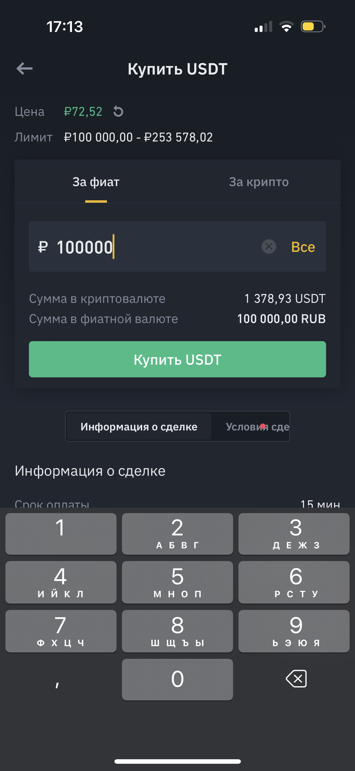 1.Покупаем USDT через p2p