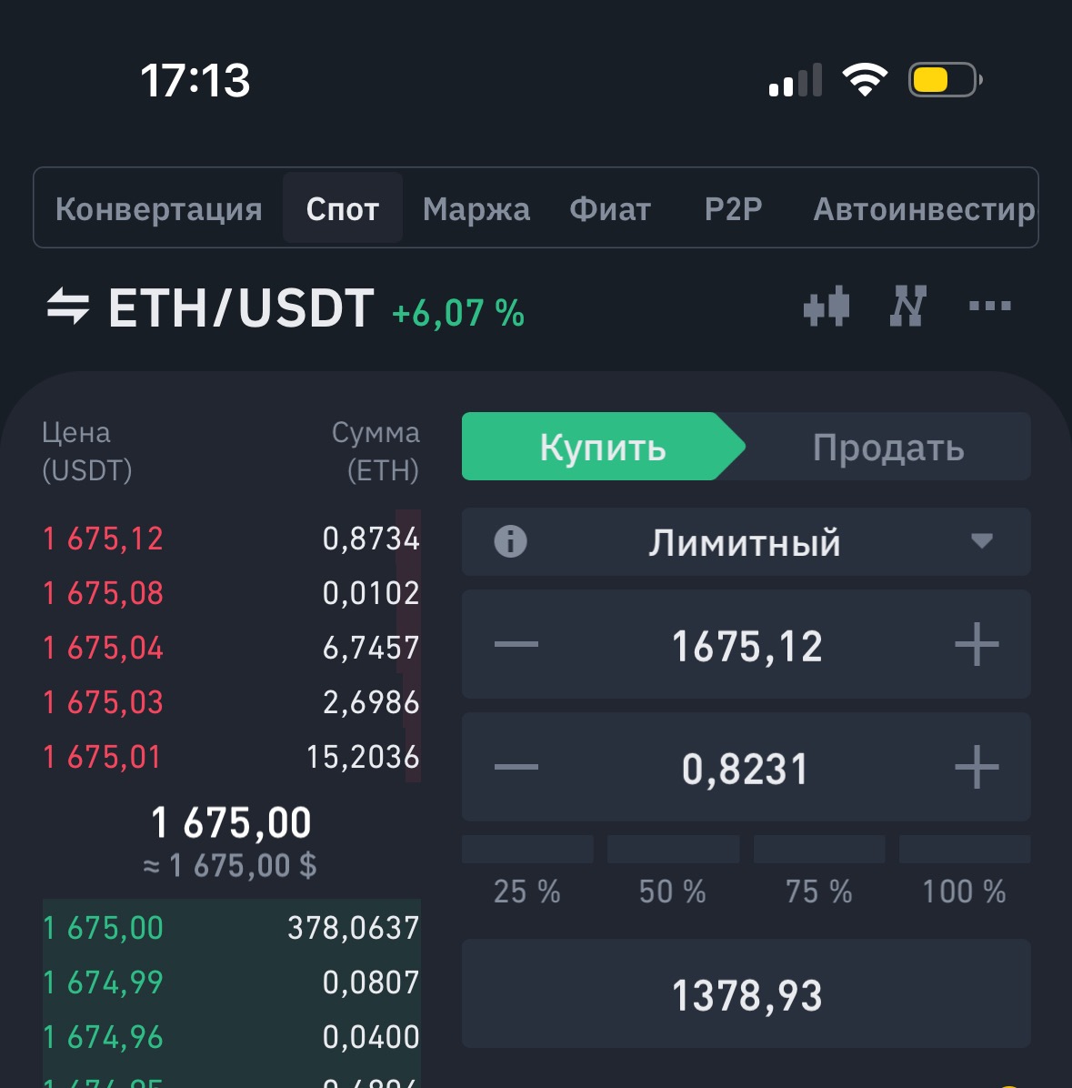 2.Покупаем на споте ETH за USDT