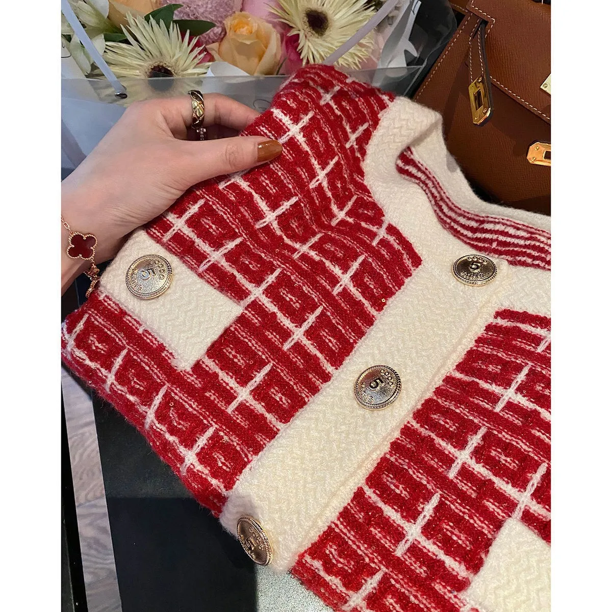 «Sweater Cardigan Women's New 2022 Early Spring and Autumn Red Round Neck Temperament Fashion Net Red Jacket Knitted Sweater» по лучшей цене на рынке! Всего за 16$ (1520рублей)