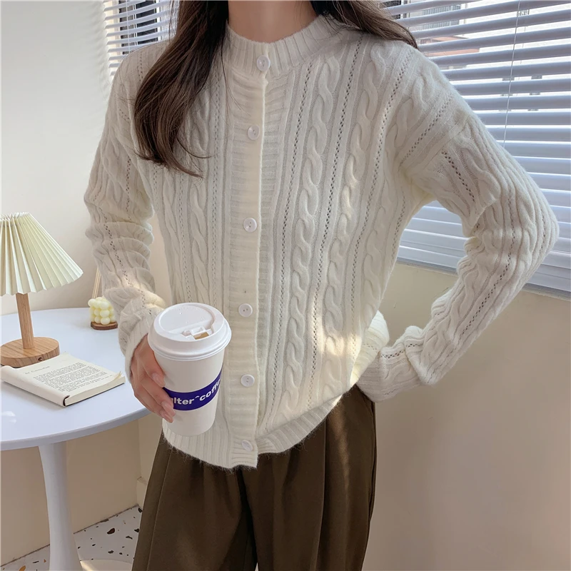 Solid Color Sweater Cardigan Korean Slim Round Collar Top Women College Wind Harajuku Style Young Elegant Streetwear Female 2022 10 06