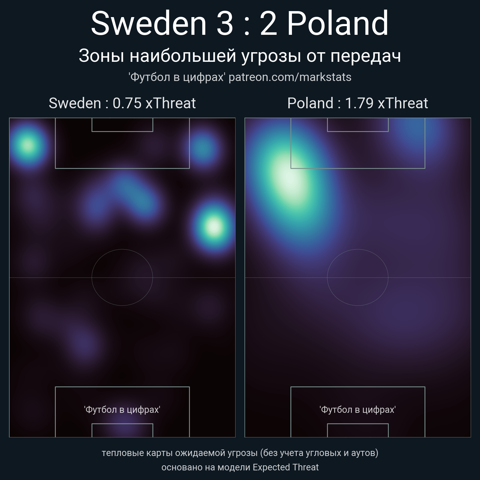▪ xThreat без учета угловых: 0.75 - 1.79