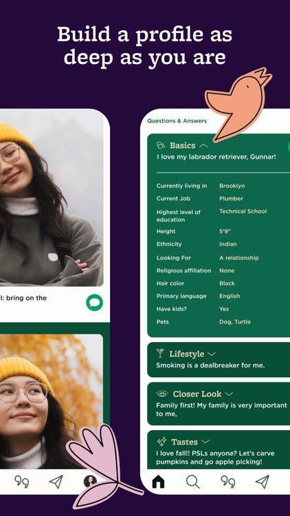 The dating app you deserve, Sweet Pea focuses on chemistry, personality and quality conversations over swipes and likes . There is someone for everyone, which is why Sweet Pea is an inclusive community that prioritizes respect; a place to make connections that lead to happy, healthy relationships .