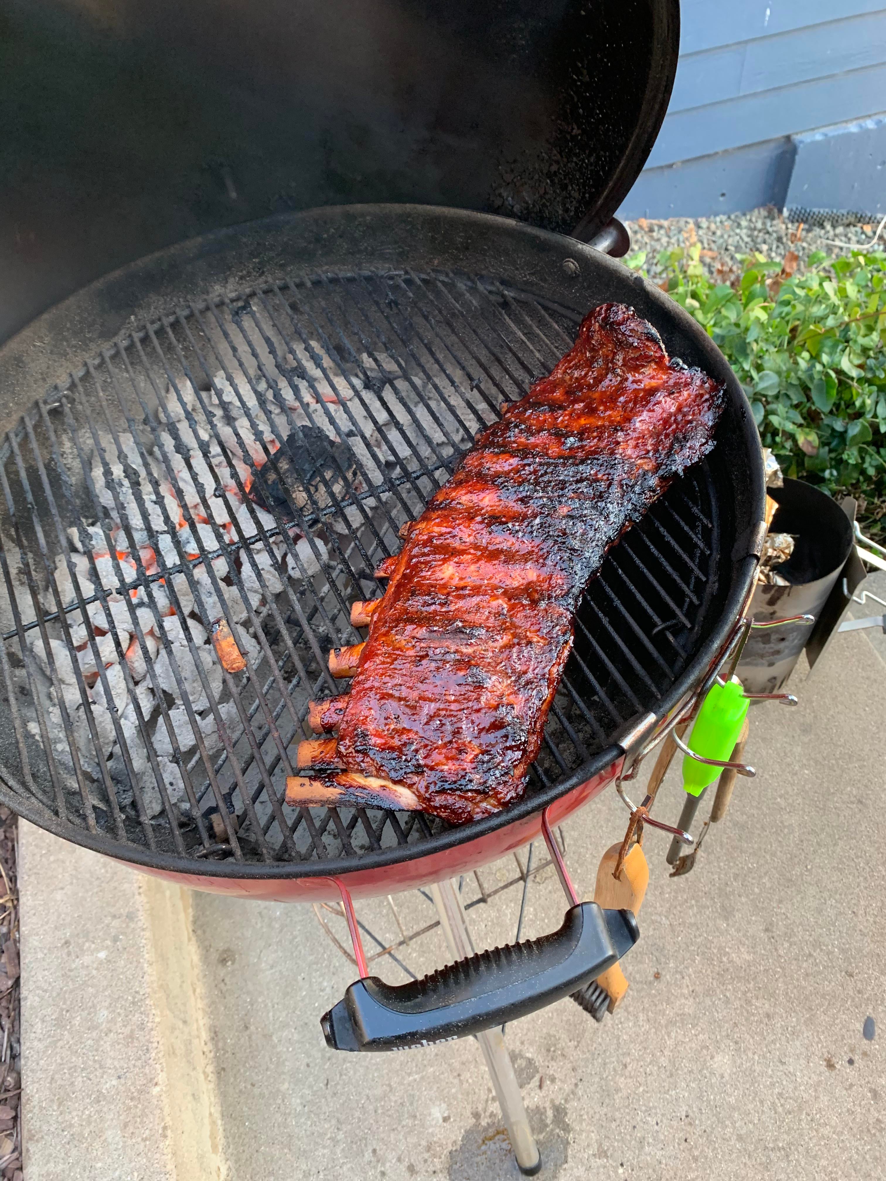 A sweet recipe for smoked pork ribs . I usually use baby back ribs but have had great success with spare ribs as well .
