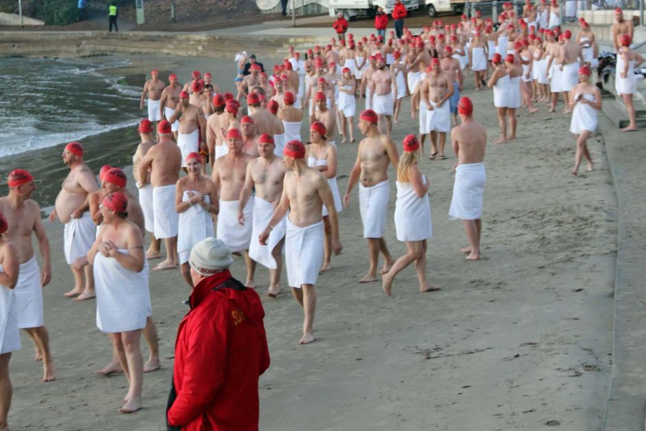 More than 1500 people bare it all and take a dip in Hobart's chilly River Derwent for the annual mid-winter nude swim marking the winter solstice.