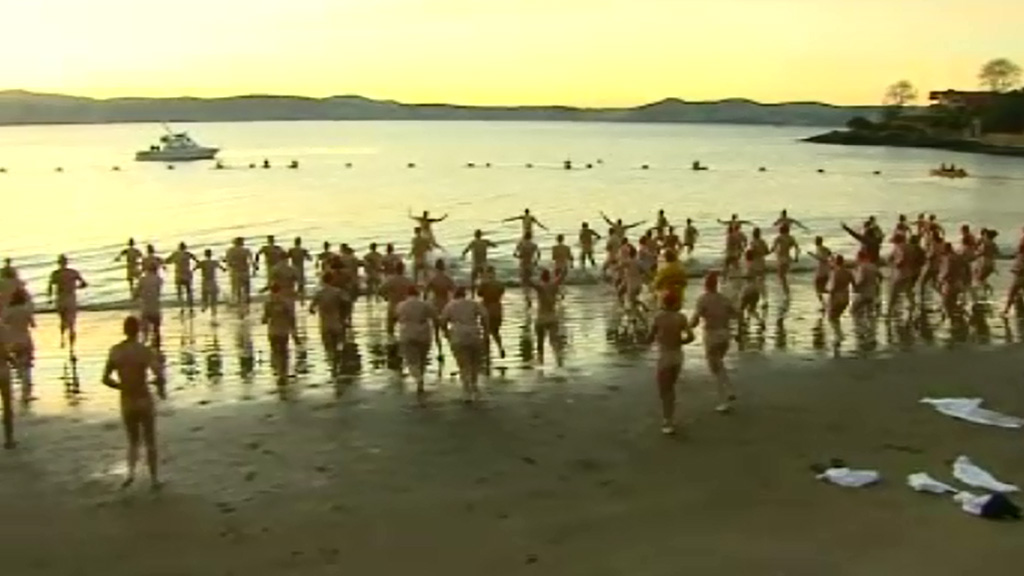 Video: Naked swimmers brave near-freezing waters for ...