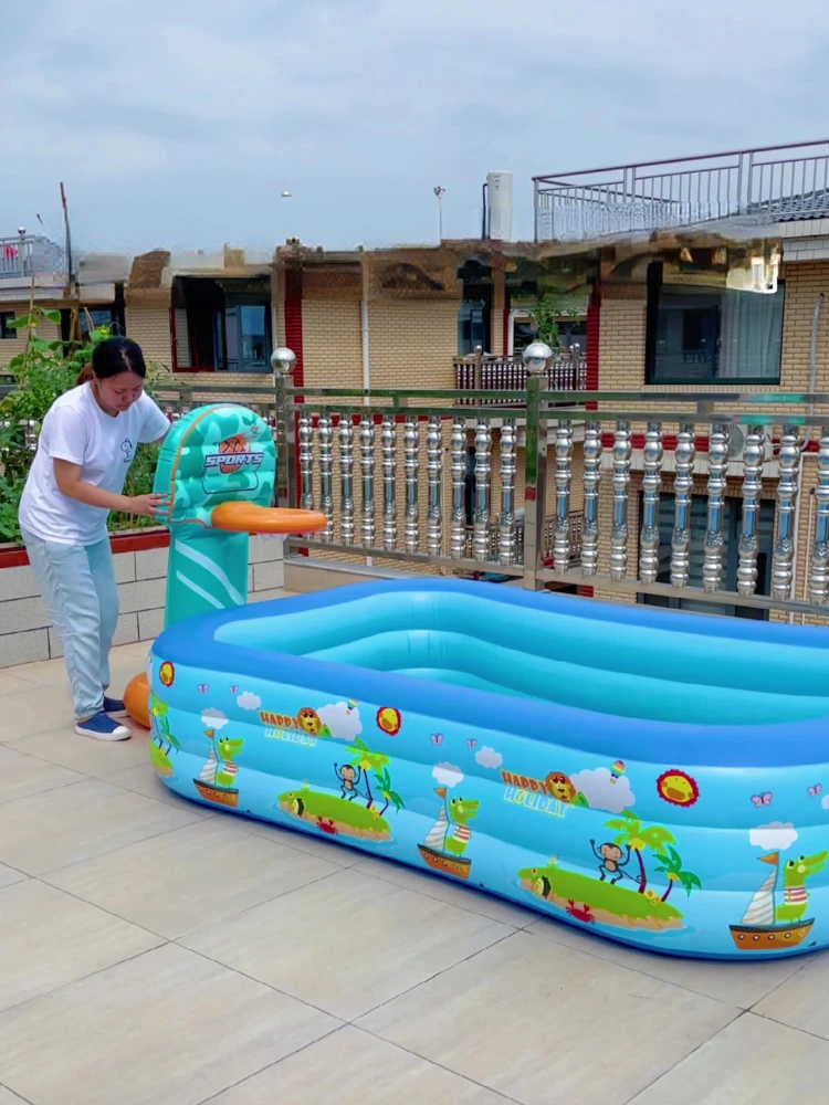 HYnAELiWHere you can buy Swimming Pool Printing 3-ring Pool Kids Toy Ball Pool Baby Bath Automatic Inflatable Swimming Pool Inner Diameter 135*90*58cm with free delivery to your post office.