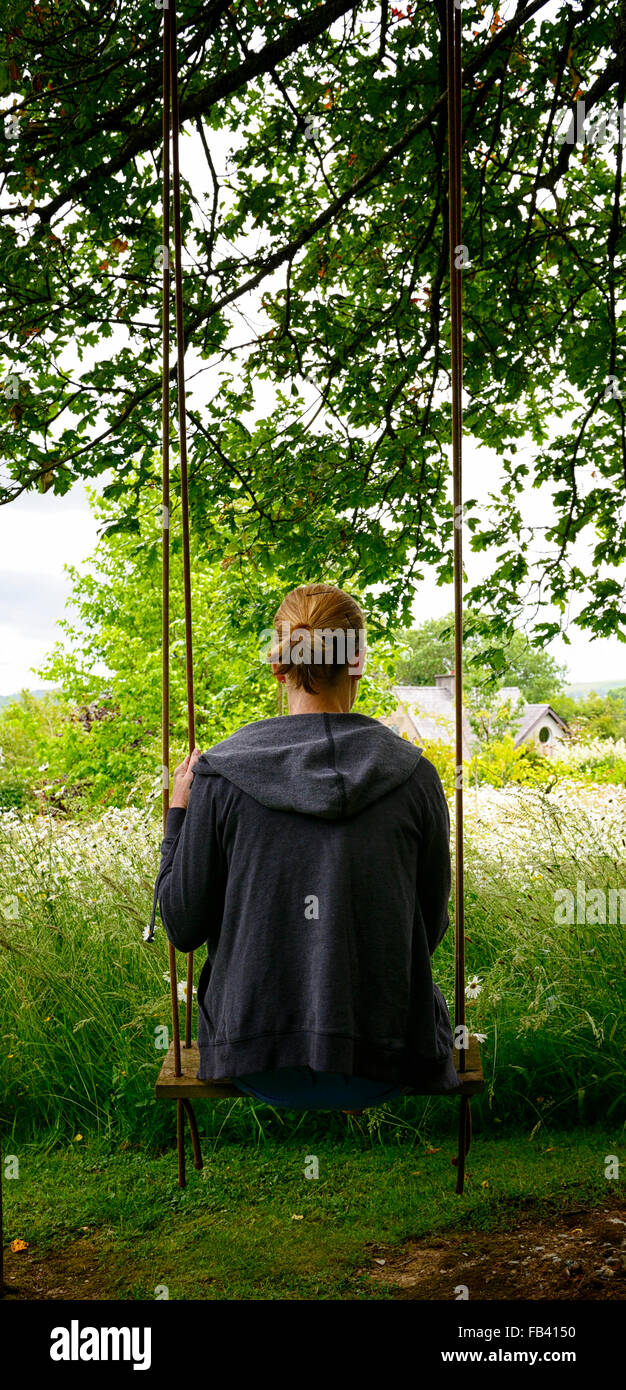 Swinging in flower garden