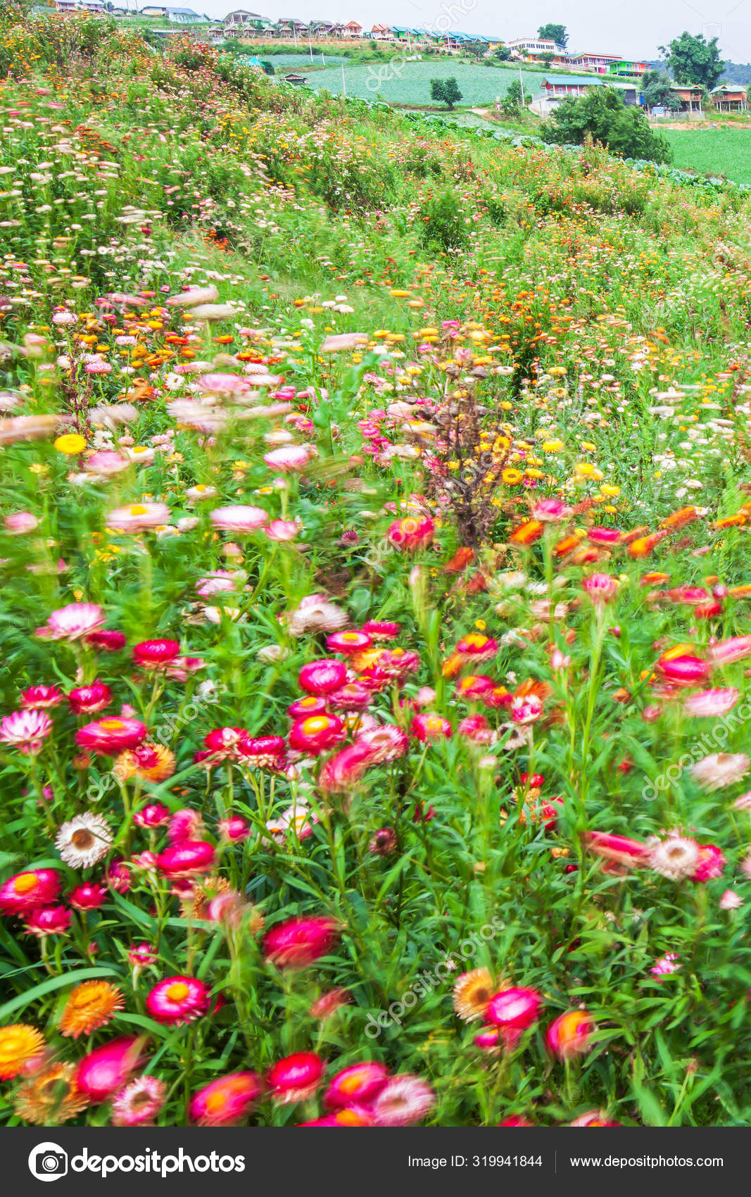 Swinging Flowers - Pink Flowers Are Swinging on Wind on .