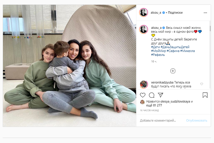Дети Алсу: дочь Микелла, сын Рафаэль, дочь Сафина